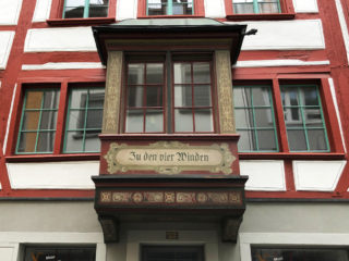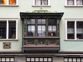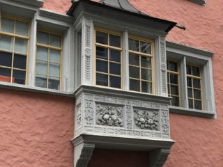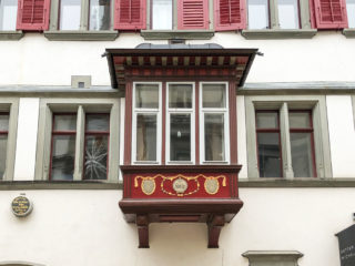 »» Gallusplatz This one was built in 1606. The figure wears a doublet and a hat. In his hands he holds two shields with the coat of arms of two…