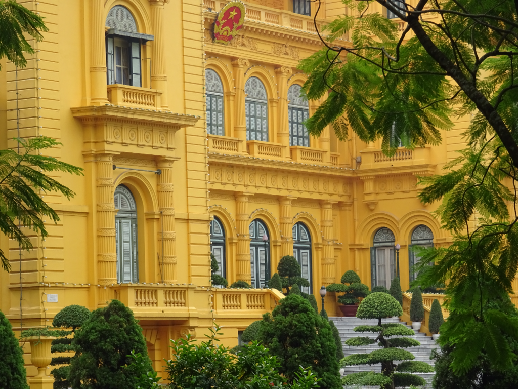 Auf dem geschichtsträchtigen Ba-Dinh-Platz im Zentrum von Hanoi verkündete der Revolutionär Ho Chi Minh 1945 die Unabhängigkeit und gründete die Demokratische Republik Vietnam (Nordvietnam). Heute liegt sein Leichnam an eben dieser historischen Stelle, nicht begraben, sondern für Besucher direkt sichtbar und erstaunlich gut erhalten in einem gläsernen Sarkophag. Leider war das Mausoleum geschlossen, als wir da waren.