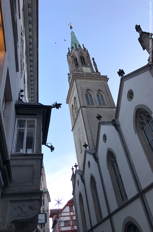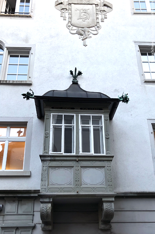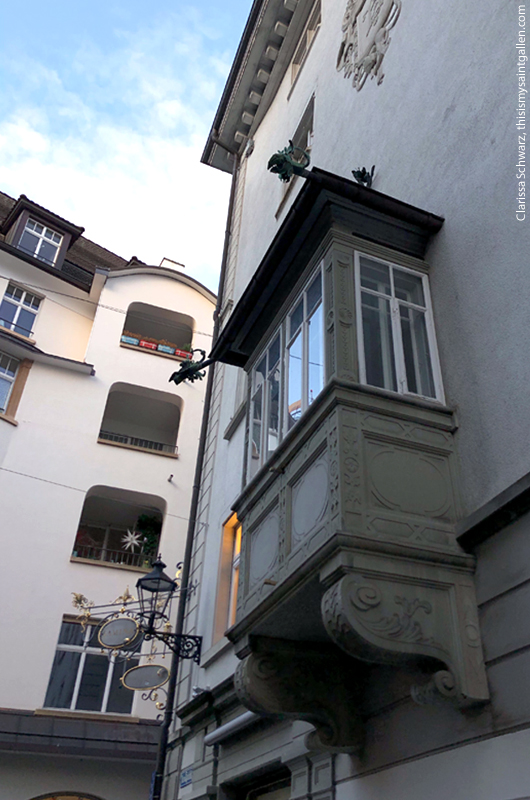 For many centuries, this late Gothic oriel had a central meaning for the city’s linen trade. Since 1667, once a year, the so called «Werckhmarcktsordnung», has been read from this oriel to the population of the city St.Gallen. This oriel captivating by its simple elegance and is made of stone.